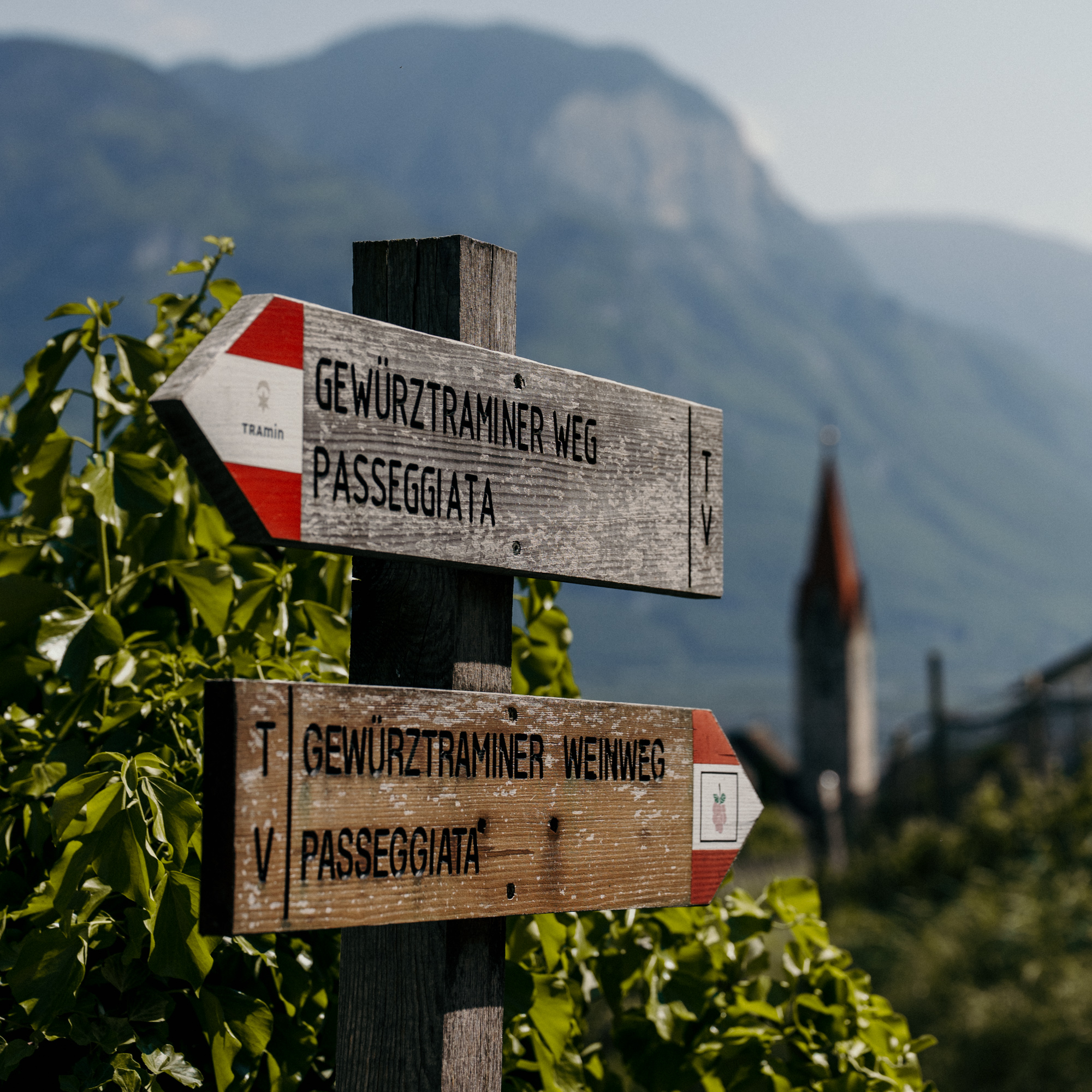Ein Weg voller Genuss von Anfang bis Ende – das ist der Gewürztraminerweg in Tramin. Zwischen sanften Rebhügeln und weiten Ausblicken wandert man hier mitten durch die Heimat des berühmten Gewürztraminers. Mal liegt der Duft reifer Trauben in der Luft, mal jener von Wald und Wiesen, dazwischen laden Bänke zum Verweilen ein. Und am Ende wartet – wie könnte es anders sein – ein Glas Wein, das nach Südtiroler Lebensfreude schmeckt.